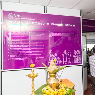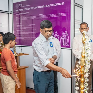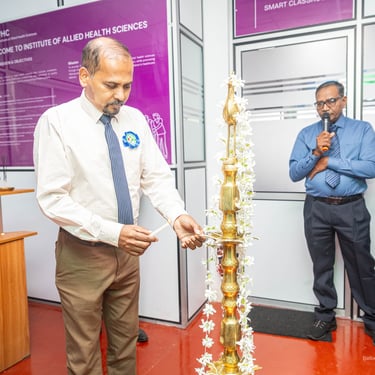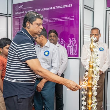 Write your text here..The Opening Ceremony and Inauguration of the Institute of Allied Health Sciences was successfully held today with the participation of distinguished guests, healthcare professionals, academic staff, students, and well-wishers. The ceremony commenced with a formal welcome, followed by the traditional Lighting of the Oil Lamp, symbolizing knowledge, unity, and a new beginning in healthcare education. The event was honoured by the presence of our Chief Guest, Dr. Weerasiri Gunawardana, Consultant Obstetrician and Gynaecologist, who delivered an inspiring address on professionalism, dedication, and compassionate healthcare service. The Director of Vavuniya Health Care (Pvt) Ltd, Dr. N. K. Kandeepan, delivered the welcome address, emphasizing the vision behind establishing the Institute and its commitment to quality education and clinical excellence. The programme was introduced by Dr. Gajarishiyan Rasalingam, who highlighted the vision and mission of the Institute and its role in developing skilled and competent allied health professionals for the future healthcare system. The ceremony concluded with a vote of thanks and refreshments, marking an important milestone in advancing allied health education. Empowering healthcare education. Shaping the future..